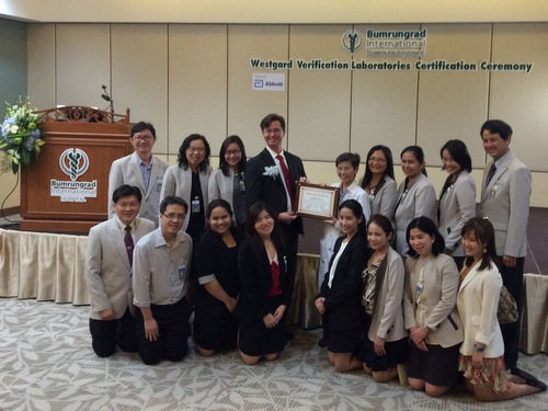 Sten Westgard and the Bumrungrad International Hospital Laboratory Staff at the original verification ceremony in 2014